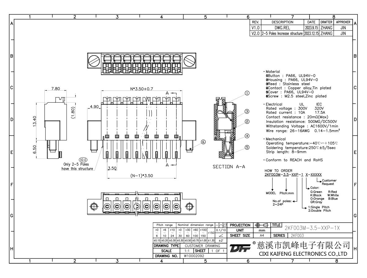 Pluggable Terminal Block MATERIAL:①Screws:Steel Zinc plated②Reed : Stainless steel③Clip : Phosphor bronze ④Button : PA66,UL94V-0 ⑤Housing : PA66,UL94V-0 ElectricalUL IEC &n