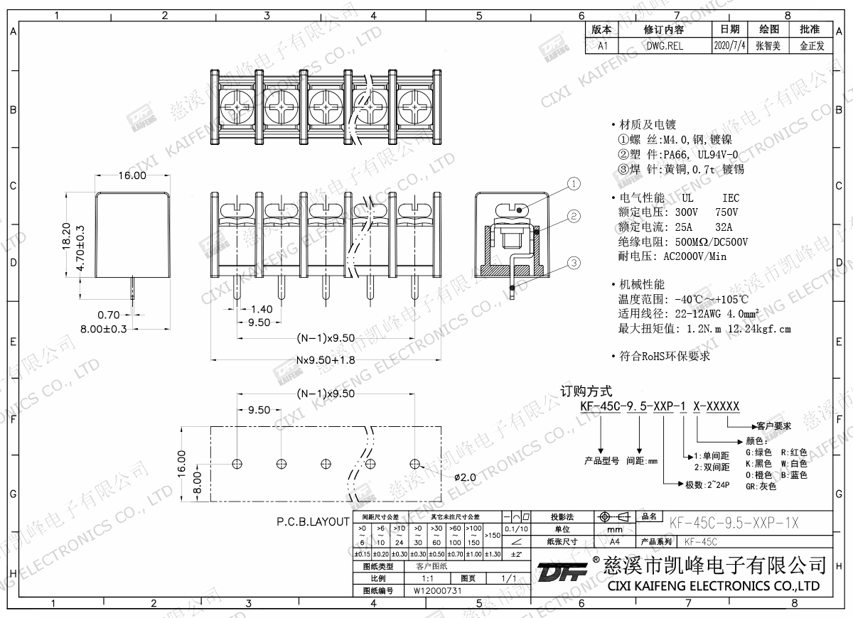 柵欄式接線端子 KF-45C-9.50mm