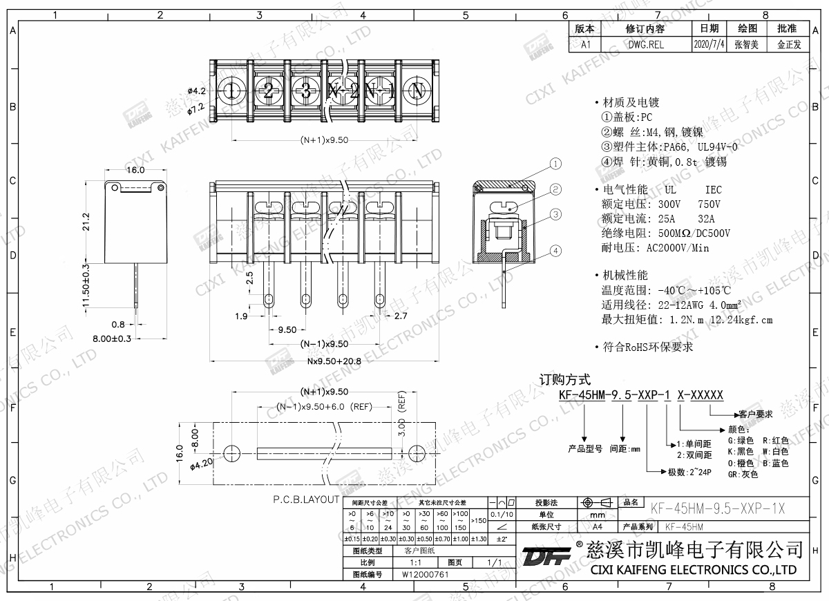 材質(zhì)電鍍:M4.0 鋼,鍍鎳端子:黃銅,0.8t 鍍鎳塑件: PA66,UL94V-0電氣性能ULIEC額定電壓300V 750V 額定電流25A32A絕緣電阻500MΩ/DC500V耐電壓AC2000V/1min使用線徑22-12AWG 4.0mm2機(jī)械性能溫度范圍-40℃~+105℃ 扭矩1.2N.m 10.53Lb.in