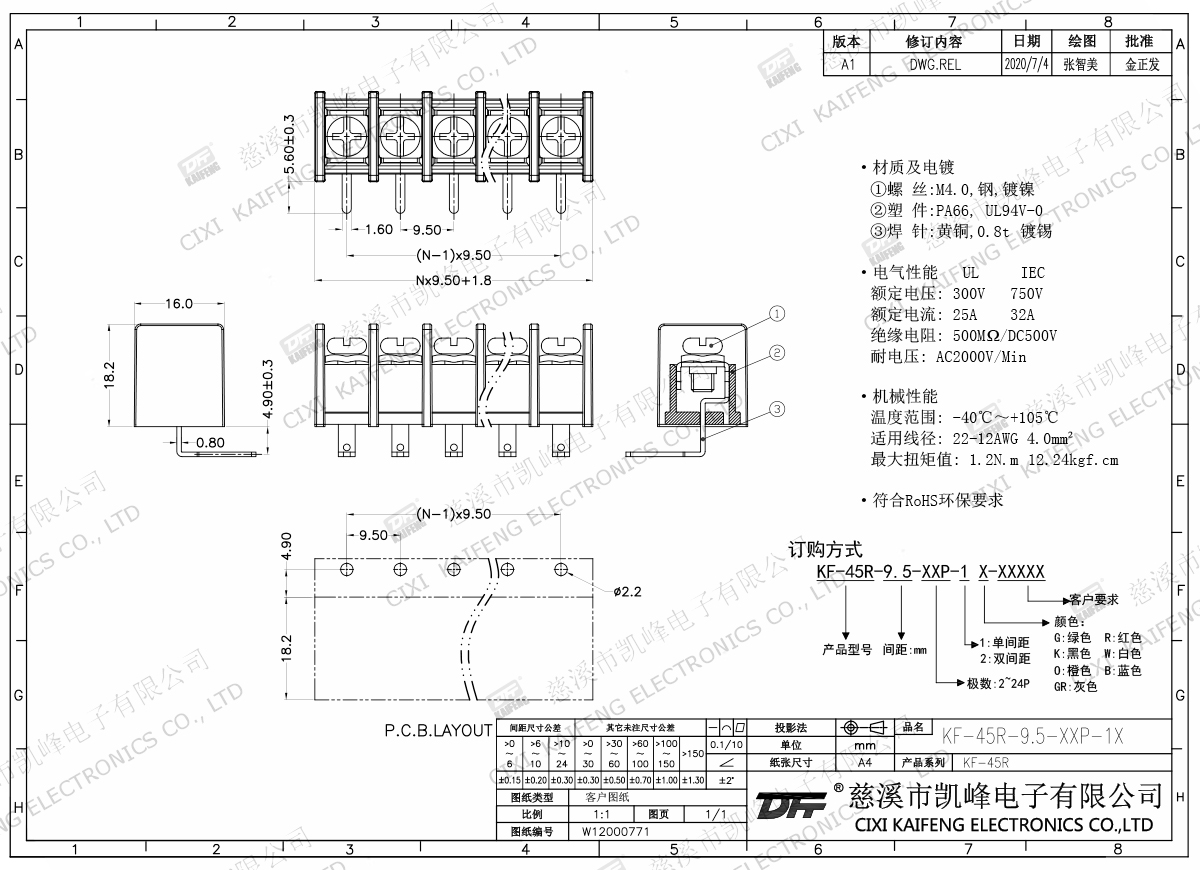 材質(zhì)電鍍:M4.0 鋼,鍍鎳端子:黃銅,0.8t 鍍鎳塑件: PA66,UL94V-0電氣性能ULIEC額定電壓300V 750V 額定電流25A32A絕緣電阻500MΩ/DC500V耐電壓AC2000V/1min使用線徑22-12AWG 4.0mm2機械性能溫度范圍-40℃~+105℃ 扭矩1.2N.m 10.53Lb.in