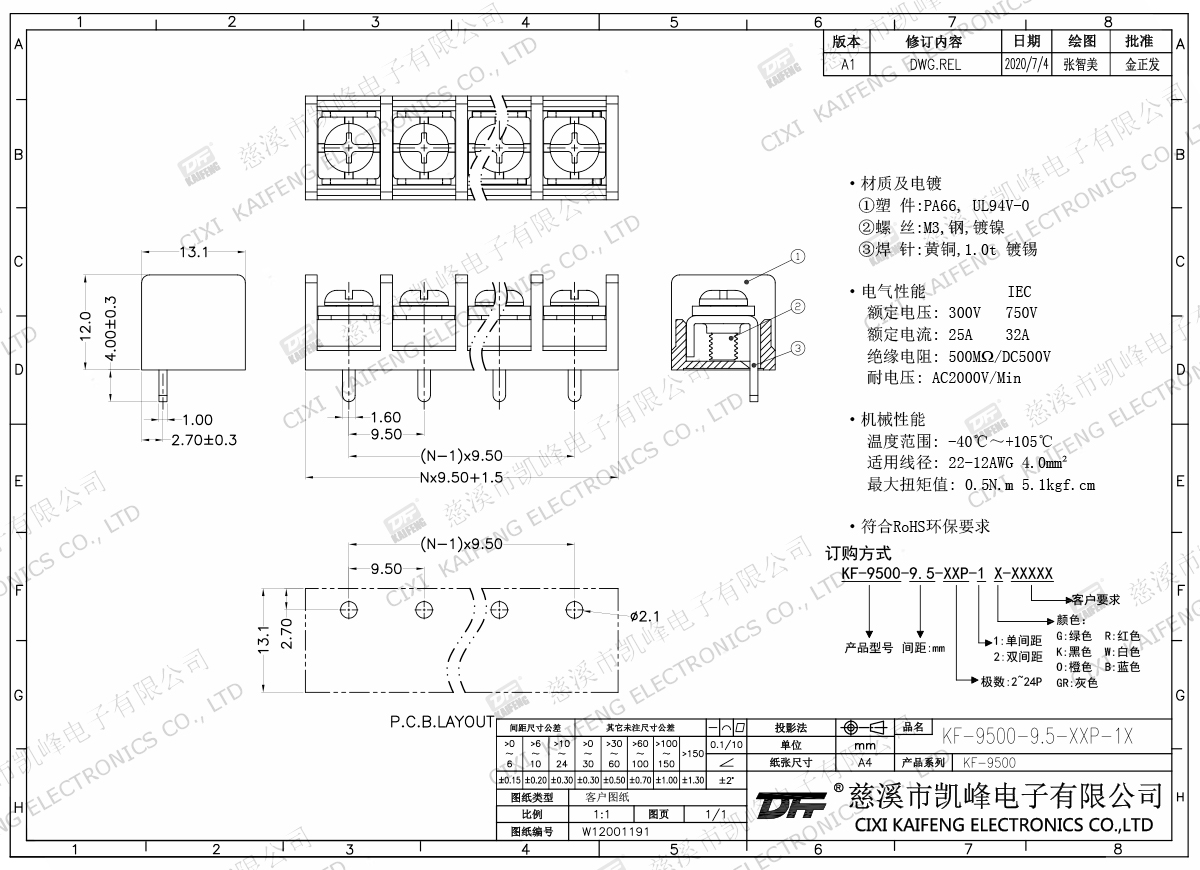 材質(zhì)電鍍:M3.0 鋼,鍍鎳端子:黃銅,0.7t 鍍鎳塑件: PA66,UL94V-0電氣性能ULIEC額定電壓300V 750V 額定電流25A32A絕緣電阻500MΩ/DC500V耐電壓AC2000V/1min使用線徑22-14AWG 4.0mm2機(jī)械性能溫度范圍-40℃~+105℃ 扭矩0.5N.m 4.4Lb.in