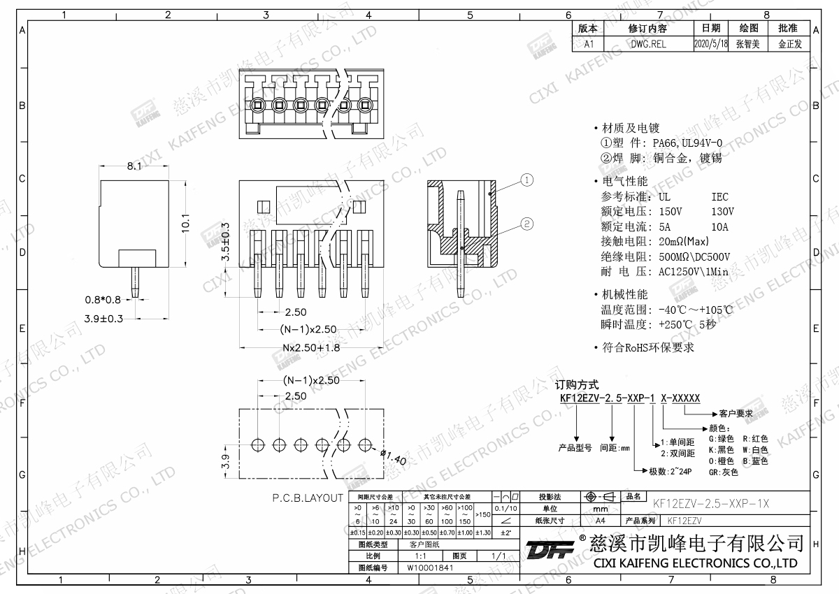 插拔式接線端子 材質(zhì)電鍍:觸點(diǎn): -焊針: 黃銅,鍍錫塑件: PA66,UL94V-0電氣性能ULIEC額定電壓150V 130V 額定電流5A10A接觸電阻20mΩ絕緣電阻500MΩ/DC500V耐電壓AC1250V/1min使用線徑-機(jī)械性能溫度范圍-40℃~+105℃ 瞬時溫度+250℃,5sec扭矩-剝線長度-