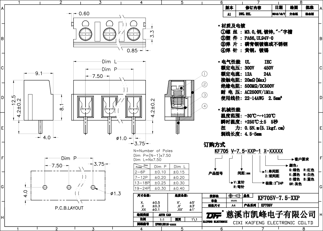 固定式式連接端子 材質(zhì)電鍍:材質(zhì)及電鍍 ①螺 絲 : M3.0 鋼 鍍鋅,"-"字槽 ②塑 件 : PA66, UL94V-0 ③彈 片 : 磷青銅鍍鎳或不銹鋼