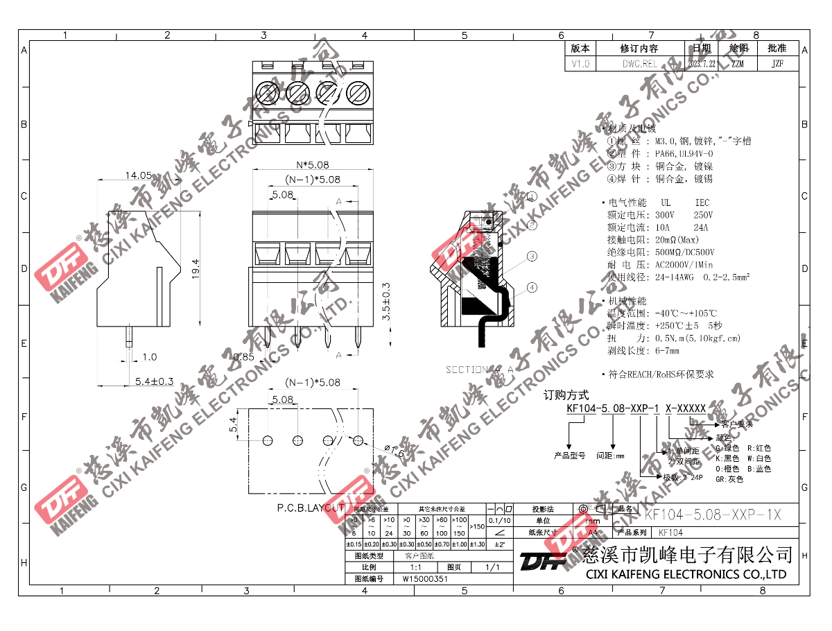 固定式式連接端子 材質(zhì)電鍍:①螺 絲 : M3.0 鋼,鍍鋅,"-"字槽 ②塑 件 : PA66, UL94V-0 ③方 盒 :黃銅,鍍鎳 ④焊 針 : 黃銅, 鍍錫 &nb