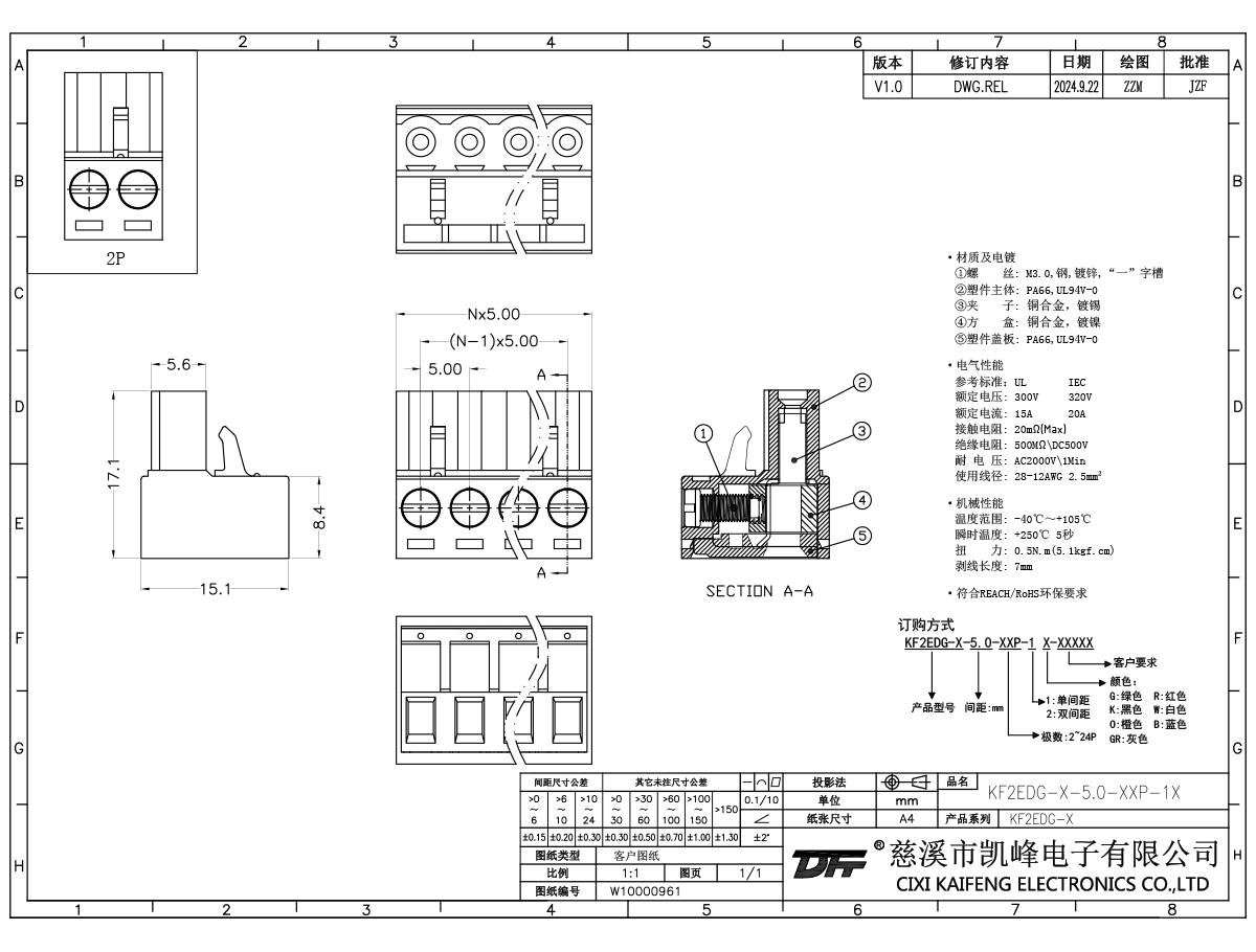 插拔式連接端子 材質(zhì)電鍍:M3.0 鋼 鍍鋅 觸點(diǎn): 磷青銅焊針:-塑件: PA66,UL94V-0電氣性能ULIEC額定電壓300V 320V 額定電流15A20A接觸電阻20mΩ絕緣電阻500MΩ/DC500V耐電壓AC2000V/1min使用線徑28-12AWG 2.5㎜2機(jī)械性能溫度范圍-40℃~+105℃ 瞬時溫度+250℃,5se