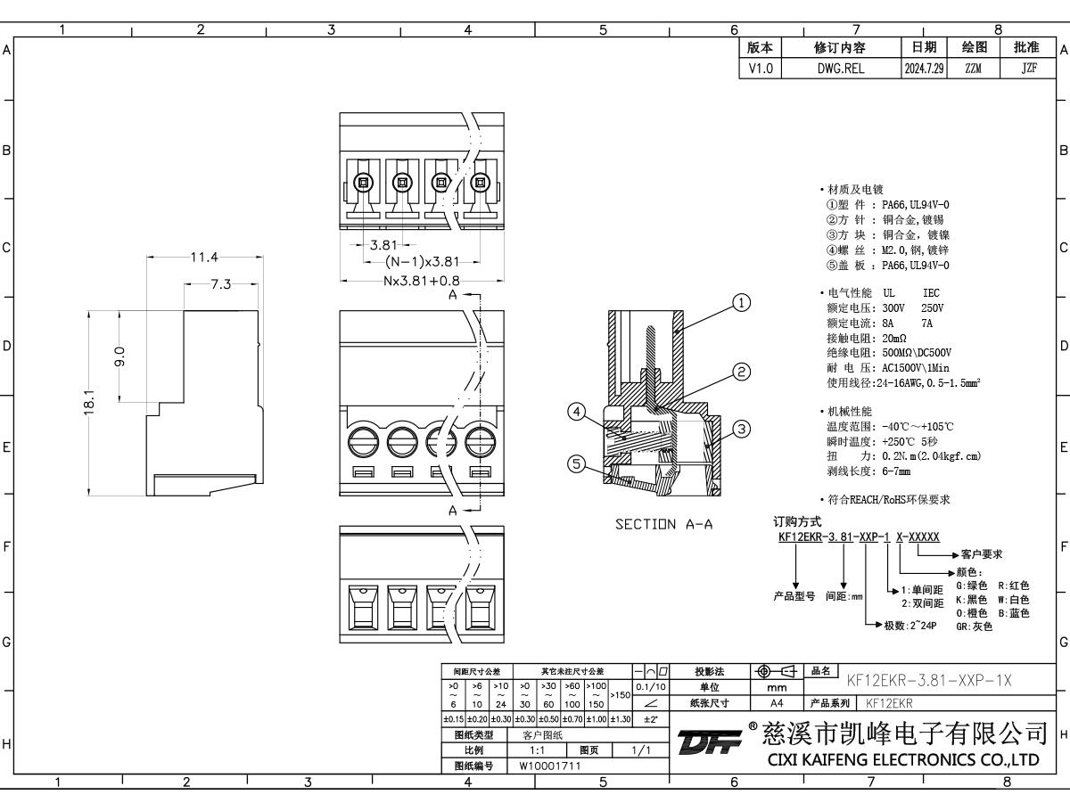 插拔式連接端子 材質(zhì)電鍍:M2.5,鋼,鍍鋅夾子:磷青銅,鍍鎳觸點:黃銅,鍍鎳塑件:PA66,UL94V-0電氣性能ULIEC額定電壓300V250V額定電流8A7A接觸電阻20mΩ絕緣電阻500MΩ/DC500V耐電壓AC1500V/1min使用線徑26-28AWG0.5-1.5mm2機械性能溫度范圍-40℃~+105℃瞬時溫度+250℃,5sec扭矩0.2N.m2.4kgf.cm剝線長度6-7mm